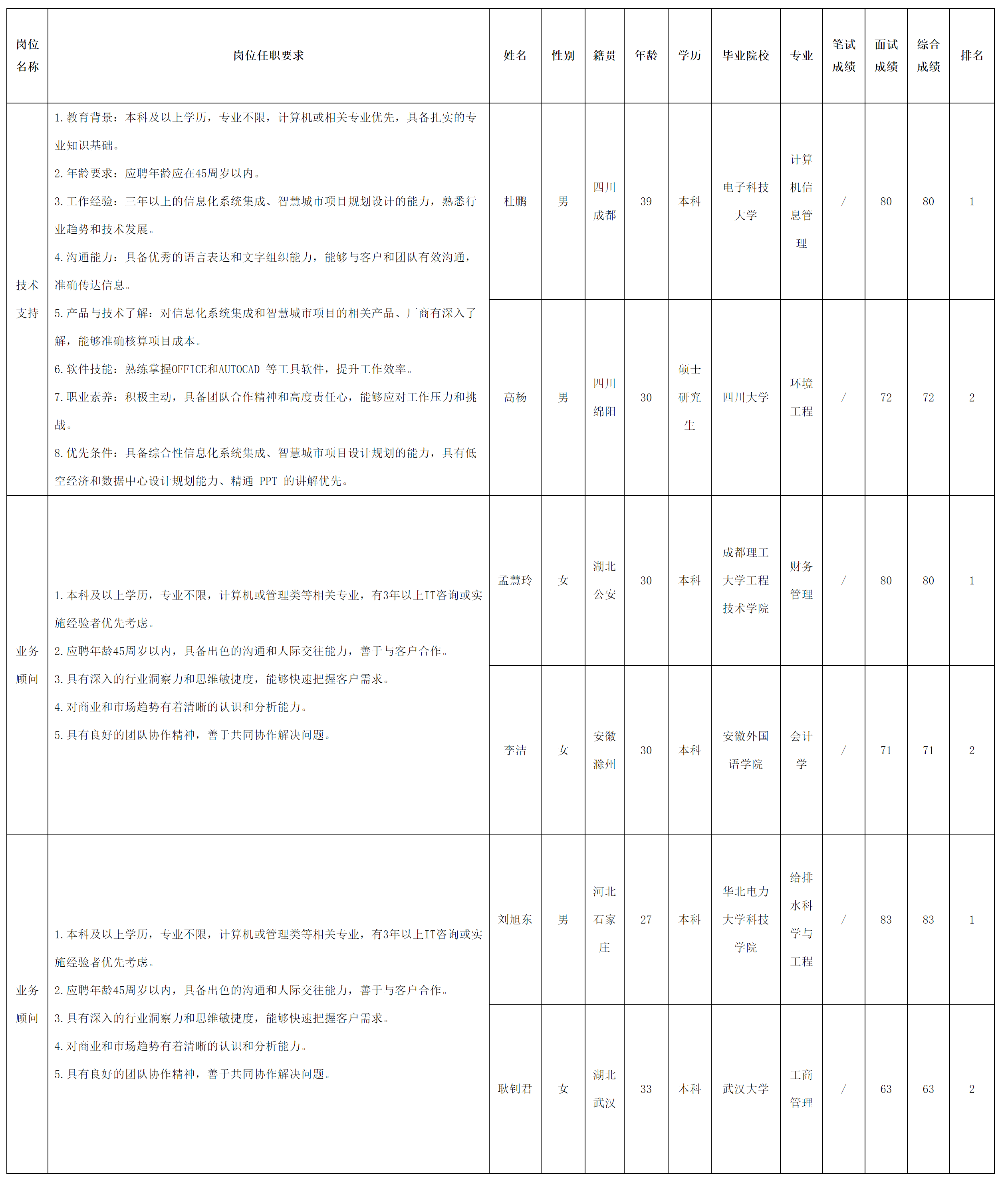 根據(jù)四川虹信軟件股份有限公司發(fā)布的招聘公告及招聘相關(guān)規(guī)定,現(xiàn)將測試成績予以公示。