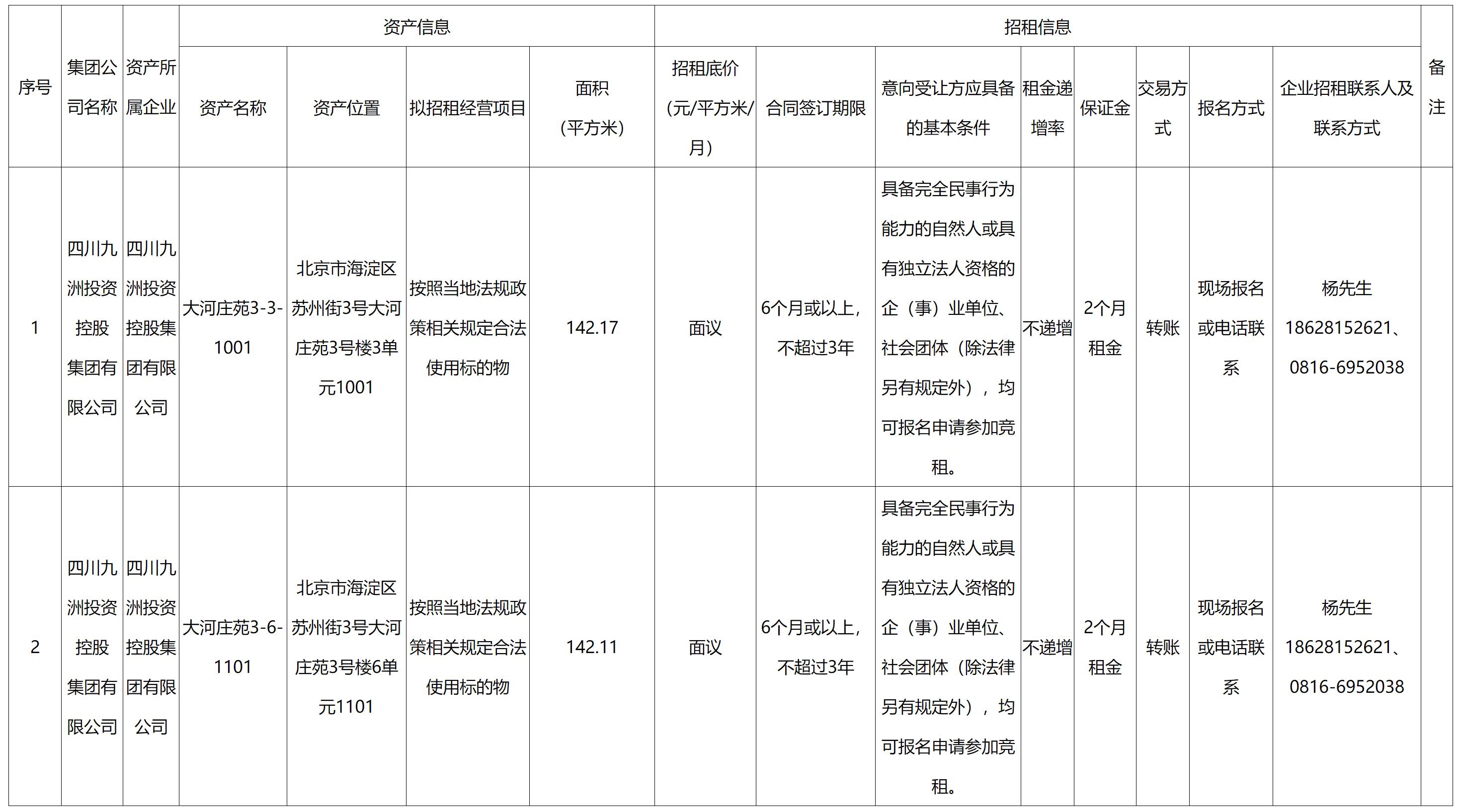 四川九洲千城商業(yè)管理有限公司北京項目部大河莊苑房屋出租公告