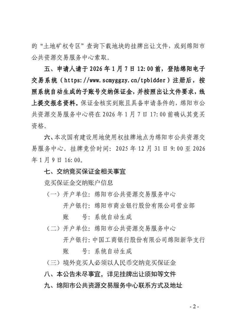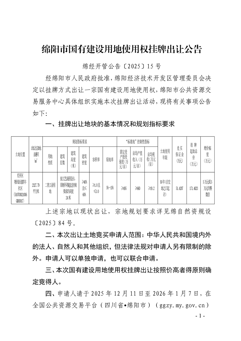 綿陽市國有建設(shè)用地使用權(quán)掛牌出讓公告(綿經(jīng)開管公告〔2025〕15號(hào))