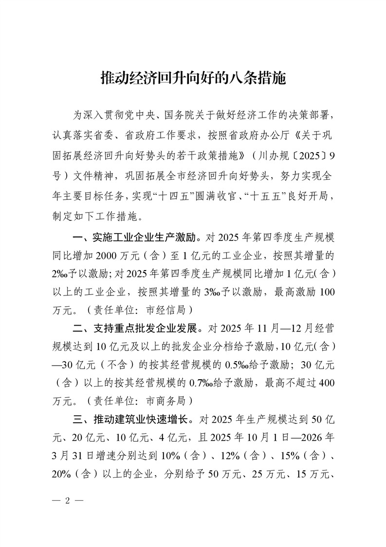 綿陽(yáng)市發(fā)展和改革委員會(huì) 綿陽(yáng)市經(jīng)濟(jì)和信息化局 綿陽(yáng)市財(cái)政局 綿陽(yáng)市住房和城鄉(xiāng)建設(shè)委員會(huì) 綿陽(yáng)市農(nóng)業(yè)農(nóng)村局 綿陽(yáng)市商務(wù)局 關(guān)于印發(fā)《推動(dòng)經(jīng)濟(jì)回升向好的八條措施》的通知