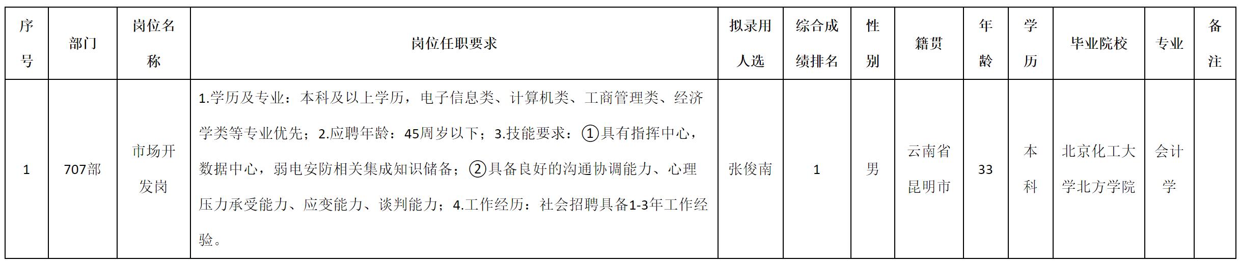 根據(jù)四川九洲電器集團有限責任公司發(fā)布的招聘公告及招聘相關規(guī)定,經(jīng)測試、考察、體檢等程序,擬錄用張俊南同志到四川九洲電器集團有限責任公司工作,現(xiàn)予以公示,具體情況如下: