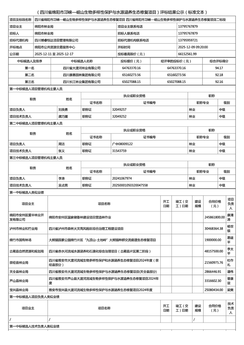 四川省綿陽市邛崍一岷山生物多樣性保護(hù)與水源涵養(yǎng)生態(tài)修復(fù)項(xiàng)目評(píng)標(biāo)結(jié)果公示(二標(biāo)段)