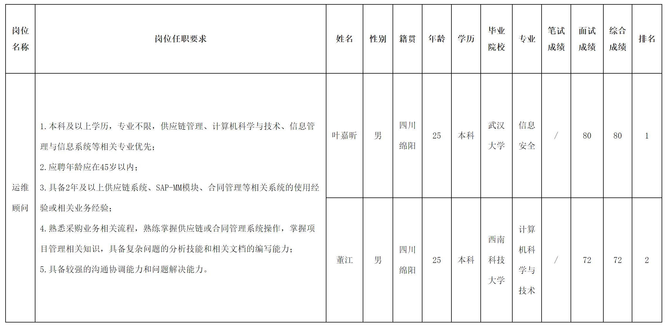 根據(jù)四川虹信軟件股份有限公司發(fā)布的招聘公告及招聘相關(guān)規(guī)定,現(xiàn)將測試成績予以公示。
