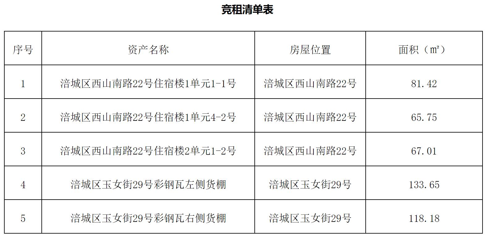 綿陽市糧油集團(tuán)有限公司營銷分公司現(xiàn)將公司代管位于涪城區(qū)西山南路22號住宿樓3套及涪城區(qū)玉女街29號貨棚的部分資產(chǎn)面向社會進(jìn)行公開競價招租(詳見競租清單表),現(xiàn)將有關(guān)事宜公告如下: