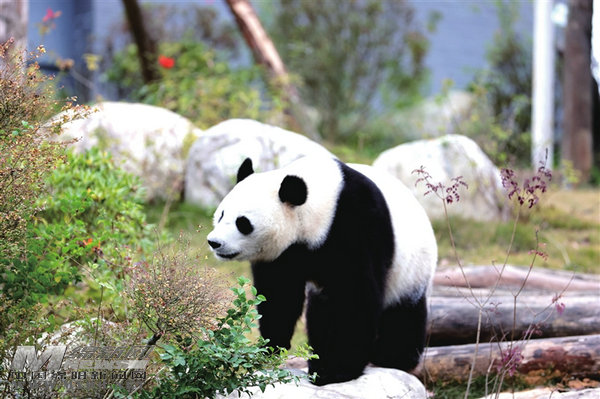 北川大熊貓動(dòng)植物園里的大熊貓“升誼”。 記者 胥江 攝