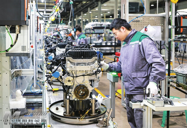 四川理想新晨科技有限公司,新能源汽車(chē)增程器生產(chǎn)線上的工人正加緊生產(chǎn)。 視覺(jué)綿陽(yáng)資料圖片