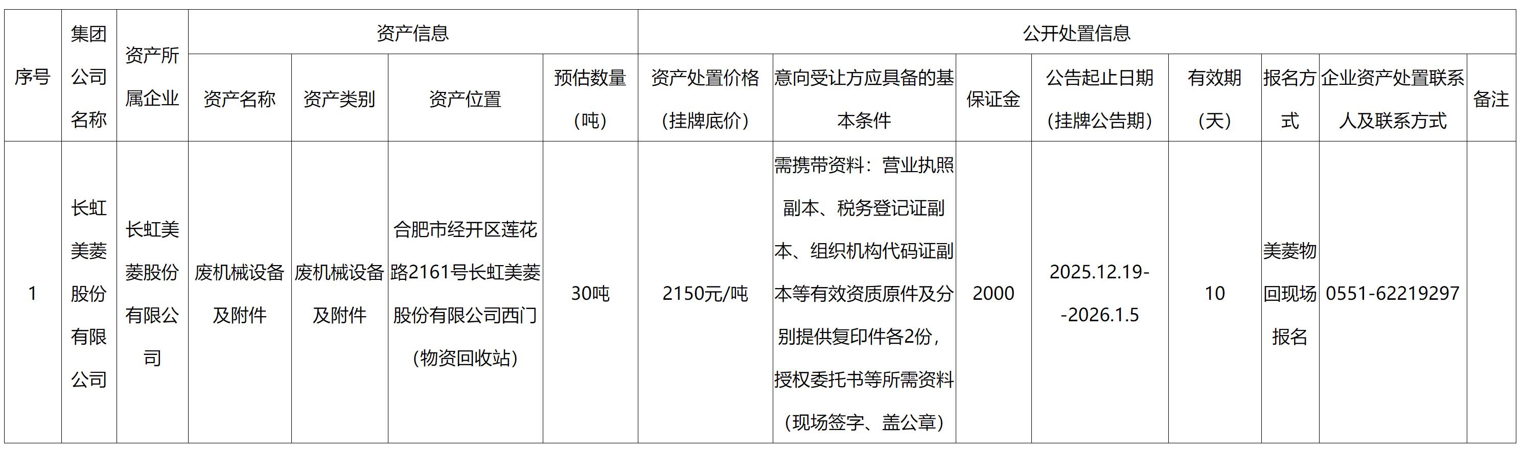 長虹美菱股份有限公司資產(chǎn)處置公告