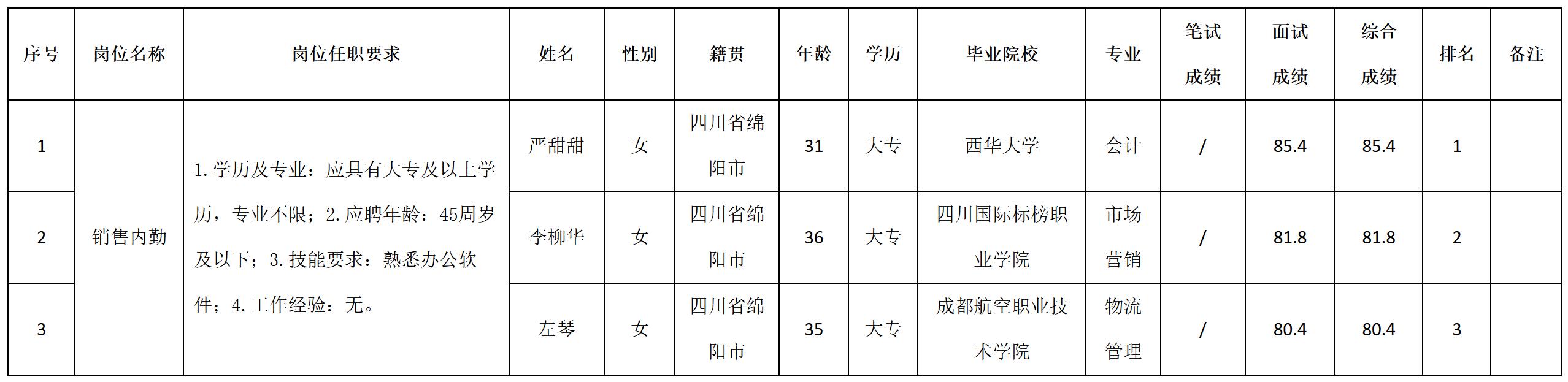根據(jù)四川九州光電子技術(shù)有限公司發(fā)布的招聘公告及招聘相關(guān)規(guī)定,經(jīng)筆試、面試等程序,現(xiàn)將筆試(面試)成績予以公示。
