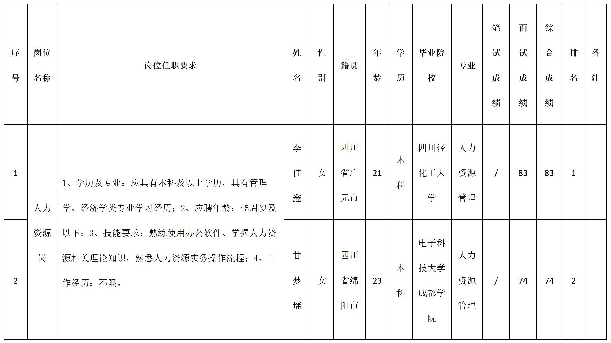 根據四川九華光子通信技術有限公司發(fā)布的招聘公告及招聘相關規(guī)定,經筆試、面試等程序,現將筆試(面試)成績予以公示。