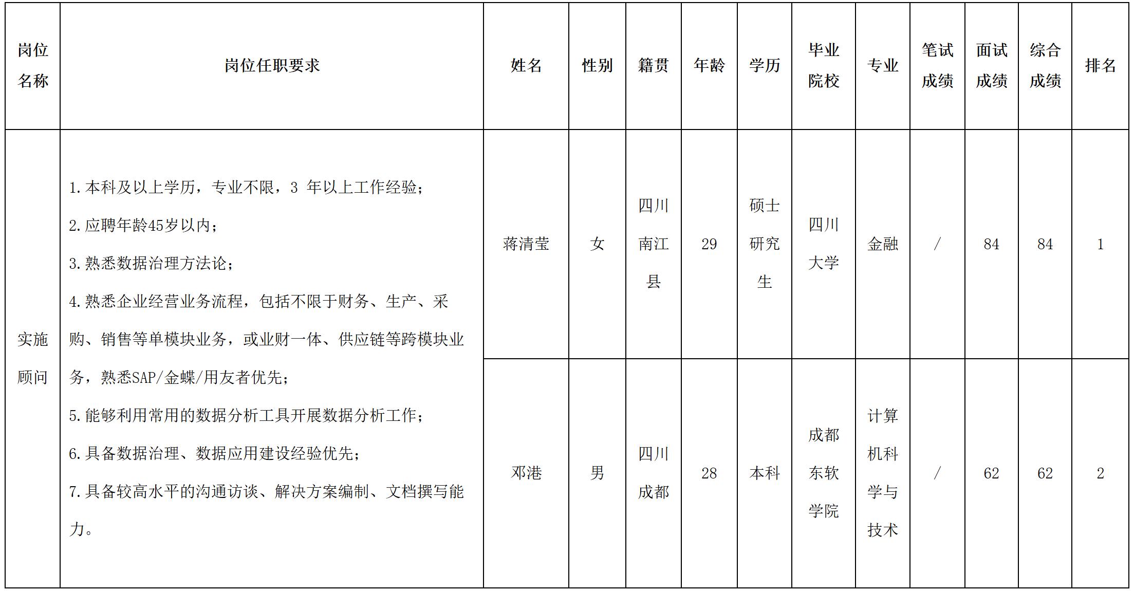 根據(jù)四川虹信軟件股份有限公司發(fā)布的招聘公告及招聘相關(guān)規(guī)定,經(jīng)面試等程序,現(xiàn)將面試成績予以公示。
