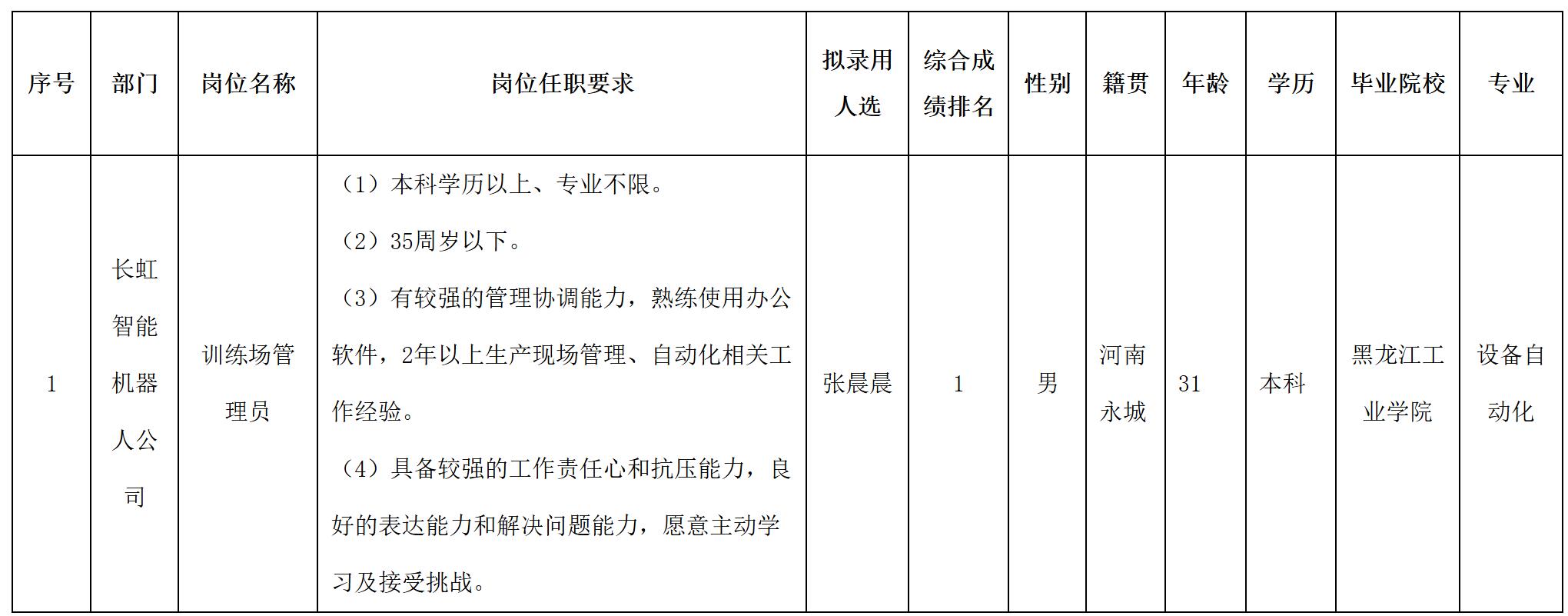 根據(jù)四川長虹虹微科技有限公司發(fā)布的招聘公告及招聘相關(guān)規(guī)定,經(jīng)面試,擬錄用張晨晨同志到公司工作,現(xiàn)予以公示,具體情況如下: