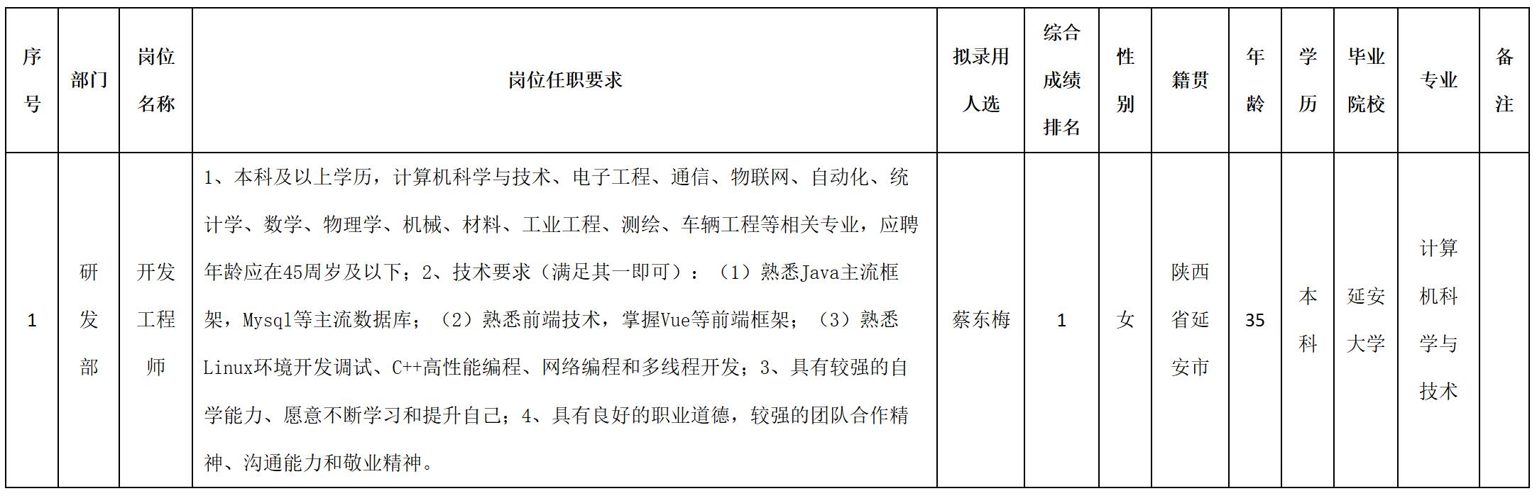 根據(jù)四川九洲投資控股集團(tuán)有限公司軟件與數(shù)據(jù)智能軍團(tuán)發(fā)布的招聘公告及招聘相關(guān)規(guī)定,經(jīng)筆試、面試、考察、體檢等程序,擬錄用蔡?hào)|梅同志到四川九洲投資控股集團(tuán)有限公司軟件與數(shù)據(jù)智能軍團(tuán)工作,現(xiàn)予以公示,具體情況如下: