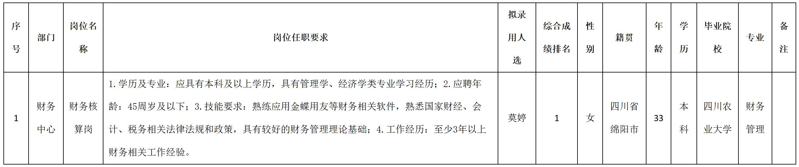 根據(jù)四川九州光電子技術(shù)有限公司發(fā)布的招聘公告及招聘相關(guān)規(guī)定,經(jīng)筆試、面試、考察、體檢等程序,擬錄用莫婷同志到四川九州光電子技術(shù)有限公司工作,現(xiàn)予以公示,具體情況如下: