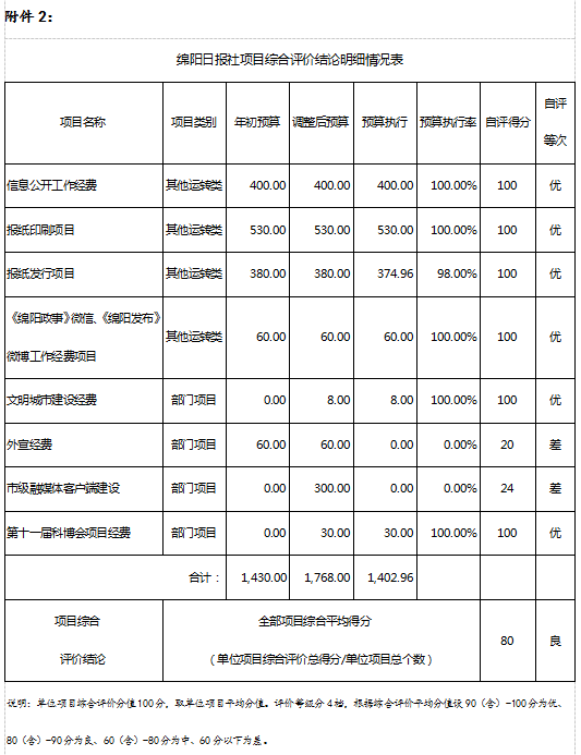附件2:綿陽日報社項(xiàng)目綜合評價結(jié)論明細(xì)情況表