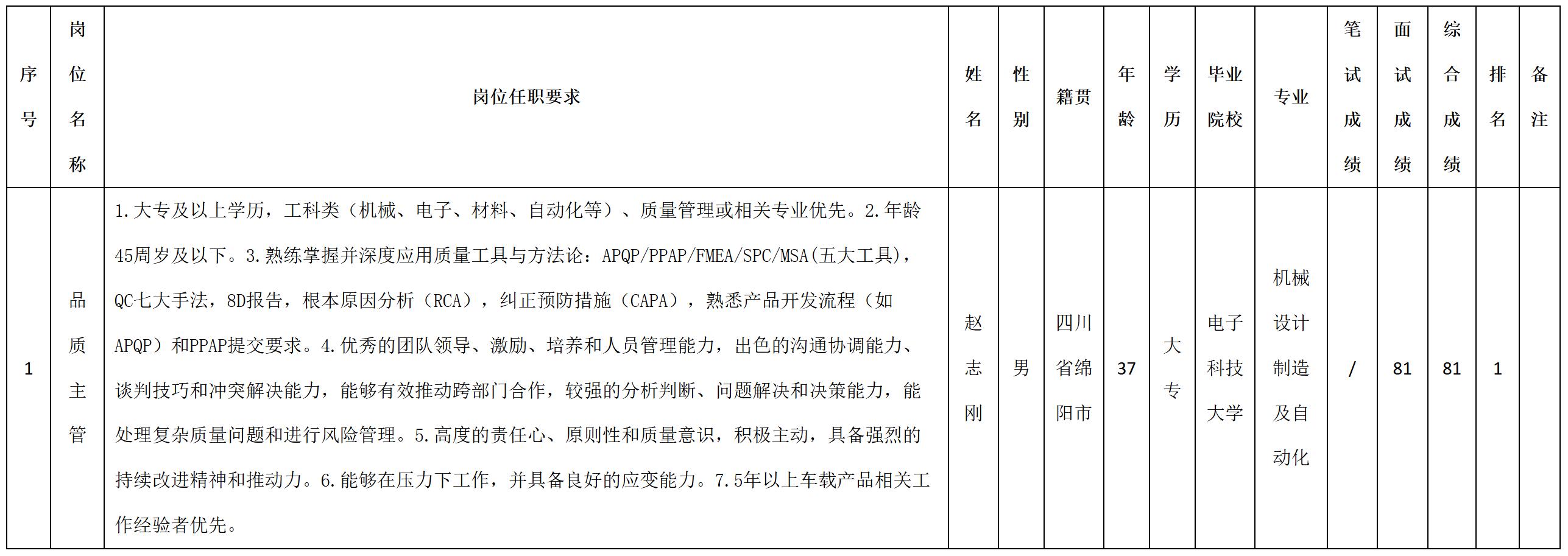 根據(jù)四川安和精密電子電器股份有限公司發(fā)布的招聘公告及招聘相關(guān)規(guī)定,現(xiàn)將測(cè)試成績(jī)予以公示。
