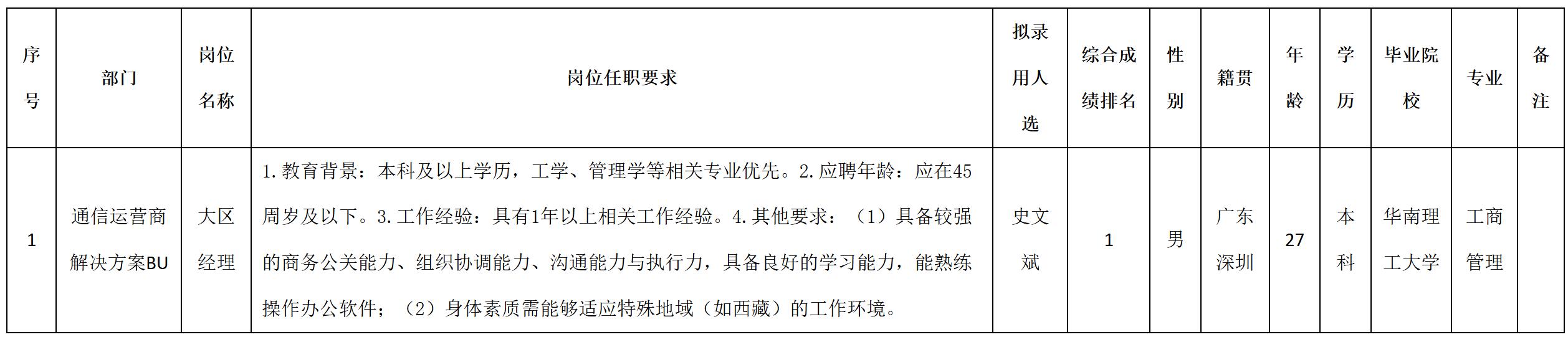 根據(jù)四川九州電子科技股份有限公司發(fā)布的招聘公告及招聘相關規(guī)定,經(jīng)測試、考察、體檢等程序,擬錄用史文斌同志到四川九州電子科技股份有限公司工作,現(xiàn)予以公示,具體情況如下: