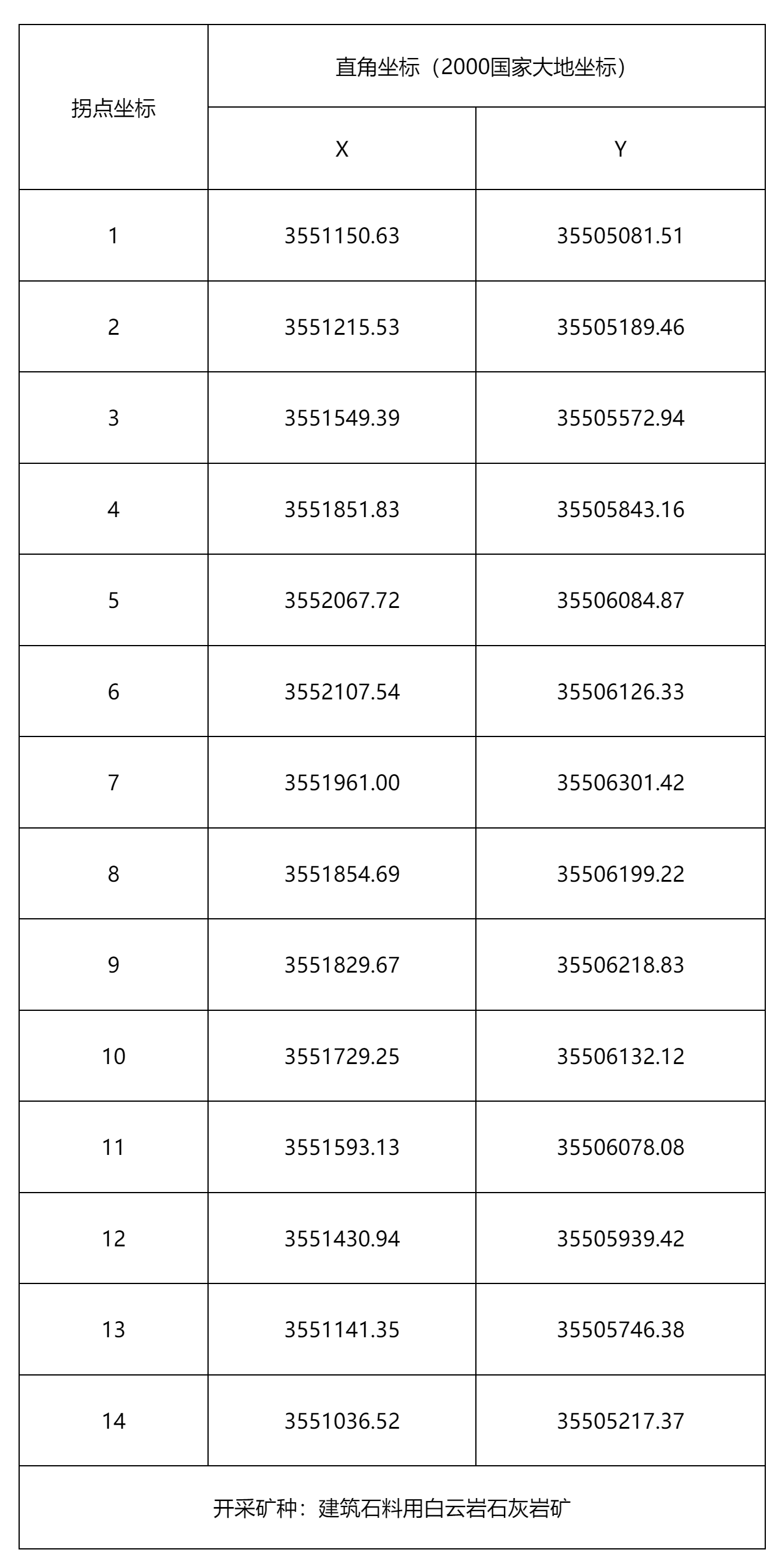 由14個(gè)拐點(diǎn)坐標(biāo)圈閉(見下表),礦區(qū)總面積:0.448平方公里,開采標(biāo)高:+1029m至+825m