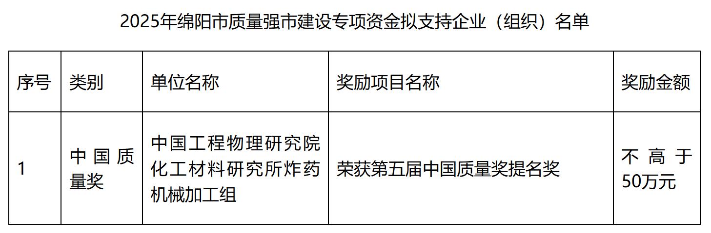 附件:2025年綿陽市質(zhì)量強市建設(shè)專項資金擬支持企業(yè)(組織)名單