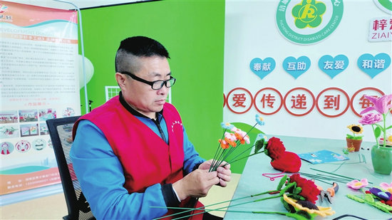 “托養(yǎng)中心有很多殘疾人朋友都鍛煉得特別好,現(xiàn)在我也和他們一起堅持鍛煉,康復(fù)效果很好。”張永國告訴記者,經(jīng)過殘聯(lián)組織的技能培訓(xùn),他現(xiàn)在已經(jīng)能獨(dú)立完成手工作品擺件,在集市上售賣時得到了大家的認(rèn)可,他想辦一個手工工作室,幫助更多殘疾人士的同時也為社會創(chuàng)造一些價值。