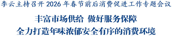 綿陽(yáng)新聞網(wǎng)訊 1月14日,市委副書記、市長(zhǎng)李云主持召開專題會(huì)議,研究部署2026年春節(jié)前后消費(fèi)促進(jìn)工作,強(qiáng)調(diào)要深入學(xué)習(xí)貫徹習(xí)近平總書記關(guān)于促進(jìn)消費(fèi)的重要論述,認(rèn)真落實(shí)中央、省委、市委經(jīng)濟(jì)工作會(huì)議部署要求,進(jìn)一步豐富市場(chǎng)供給,扎實(shí)做好服務(wù)保障,全力打造年味濃郁、安全有序的消費(fèi)環(huán)境,更好發(fā)揮消費(fèi)對(duì)經(jīng)濟(jì)發(fā)展的基礎(chǔ)性作用。