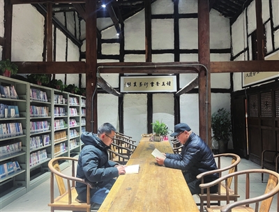 游客在修繕后的王家大院看書。 葉亮亮 攝