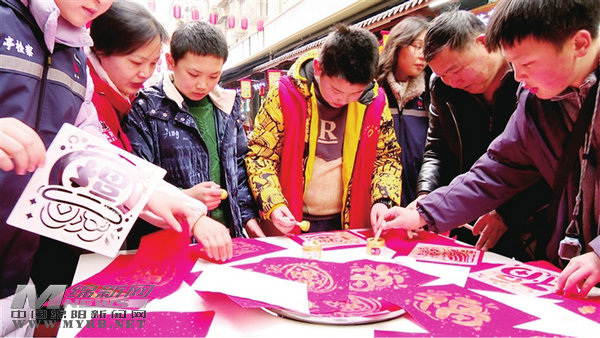 活動現(xiàn)場,社區(qū)志愿者還帶來了拓印“福”字的體驗項目,手把手教居民操作。蘸墨、鋪紙、按壓,一個個金燦燦的“福”字躍然紙上,大家捧著自己拓印的“福”字,臉上滿是歡喜。