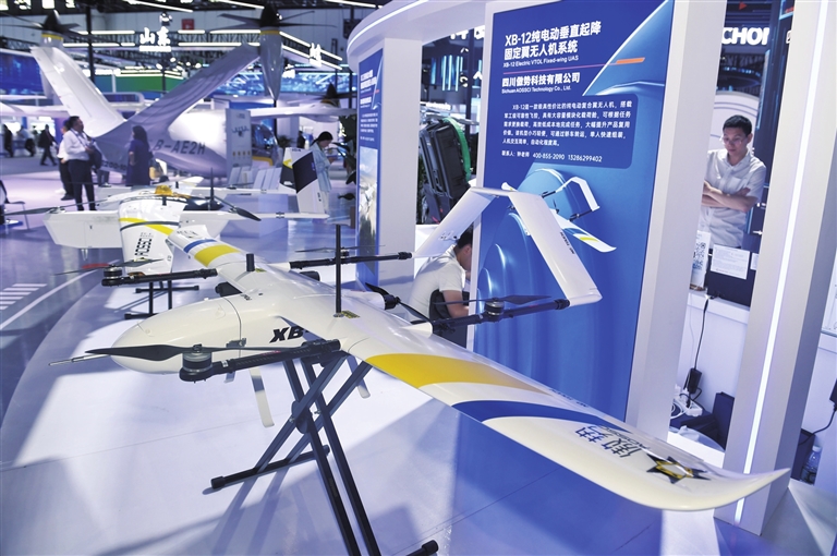在四川省成都市舉辦的第二屆“一帶一路”科技交流大會(huì)上展出的無(wú)人機(jī)(2025年6月11日攝)。新華社記者 劉坤 攝