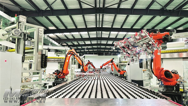 車間里,黃色的機(jī)械臂在流水線上往復(fù)穿梭,與輸送設(shè)備、定位裝置、打包系統(tǒng)無縫銜接,實現(xiàn)“生產(chǎn)—堆放—出貨打包”一體化。