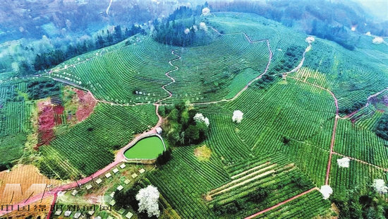 擂鼓茶葉現(xiàn)代農(nóng)業(yè)園區(qū)內(nèi),連片的茶園生機(jī)盎然。 記者 唐云峰 攝