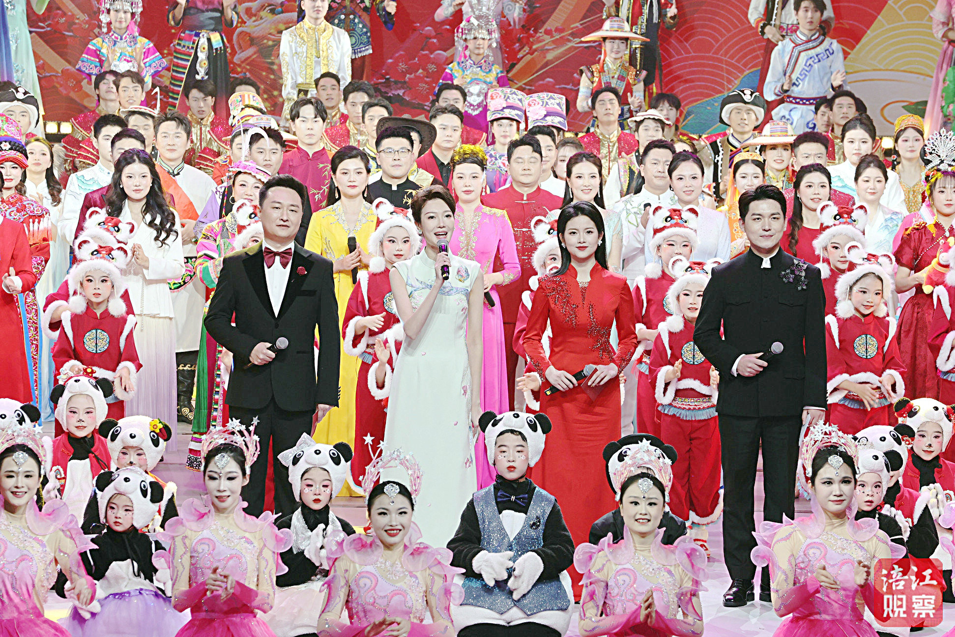 綿陽春晚主持人王樂(中排左一)、張雅琦(中排左二)、郭想向(中排右二)、宋汪洋(中排右一)