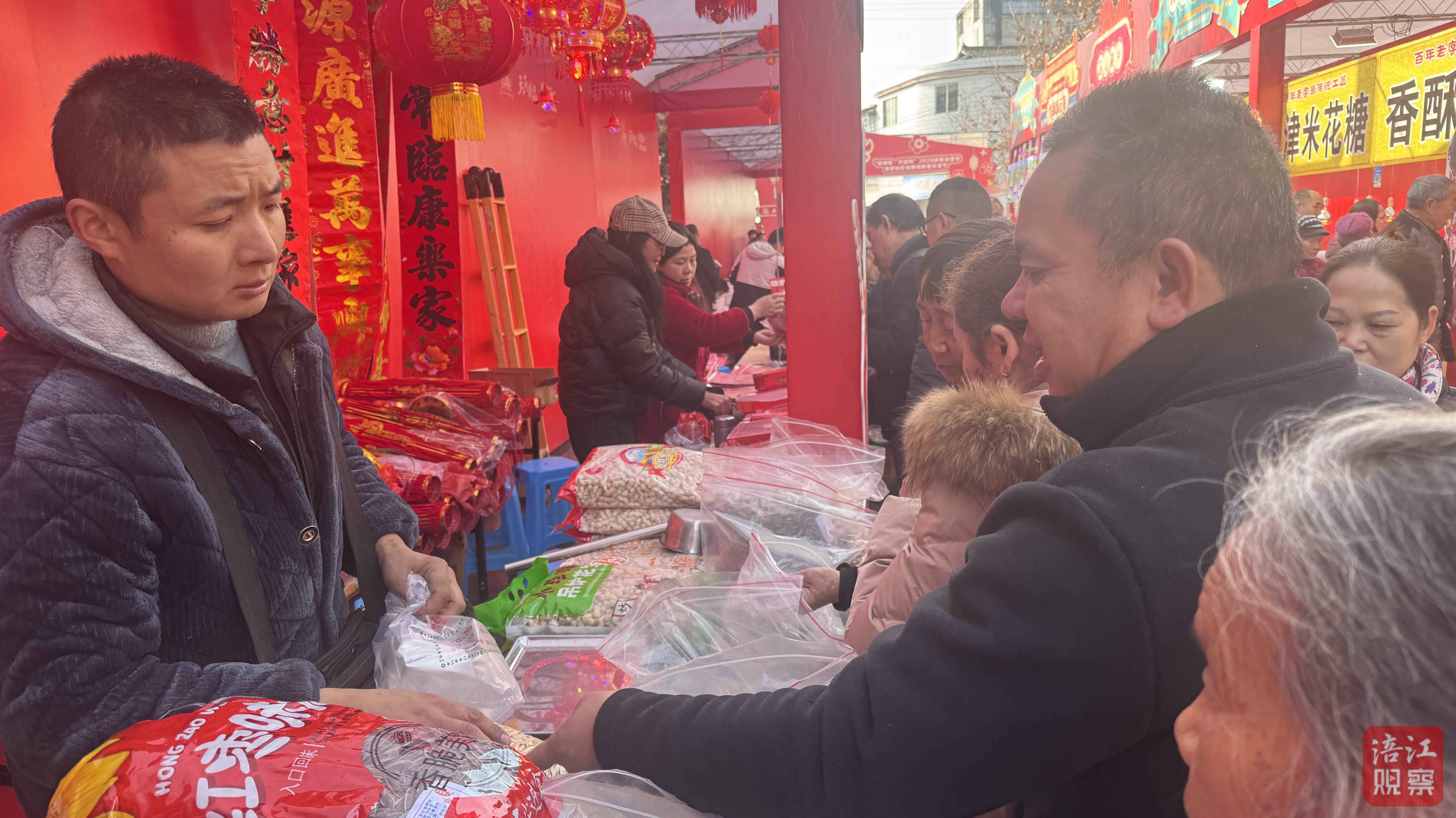 集市上,紅紙金字的春聯(lián)與福字交相輝映,鋪展出一道溫暖的風(fēng)景;剛出籠的米糕熱氣裊裊,芝麻燒餅金黃酥脆,各式餡餅香氣四溢;糖果攤旁,酥糖、奶糖、沙琪瑪備受歡迎。歡聲笑語中,人人手提滿滿的年貨,空氣中交織著糖香與臘味,將春節(jié)的溫馨愈釀?dòng)鷿狻?/p>