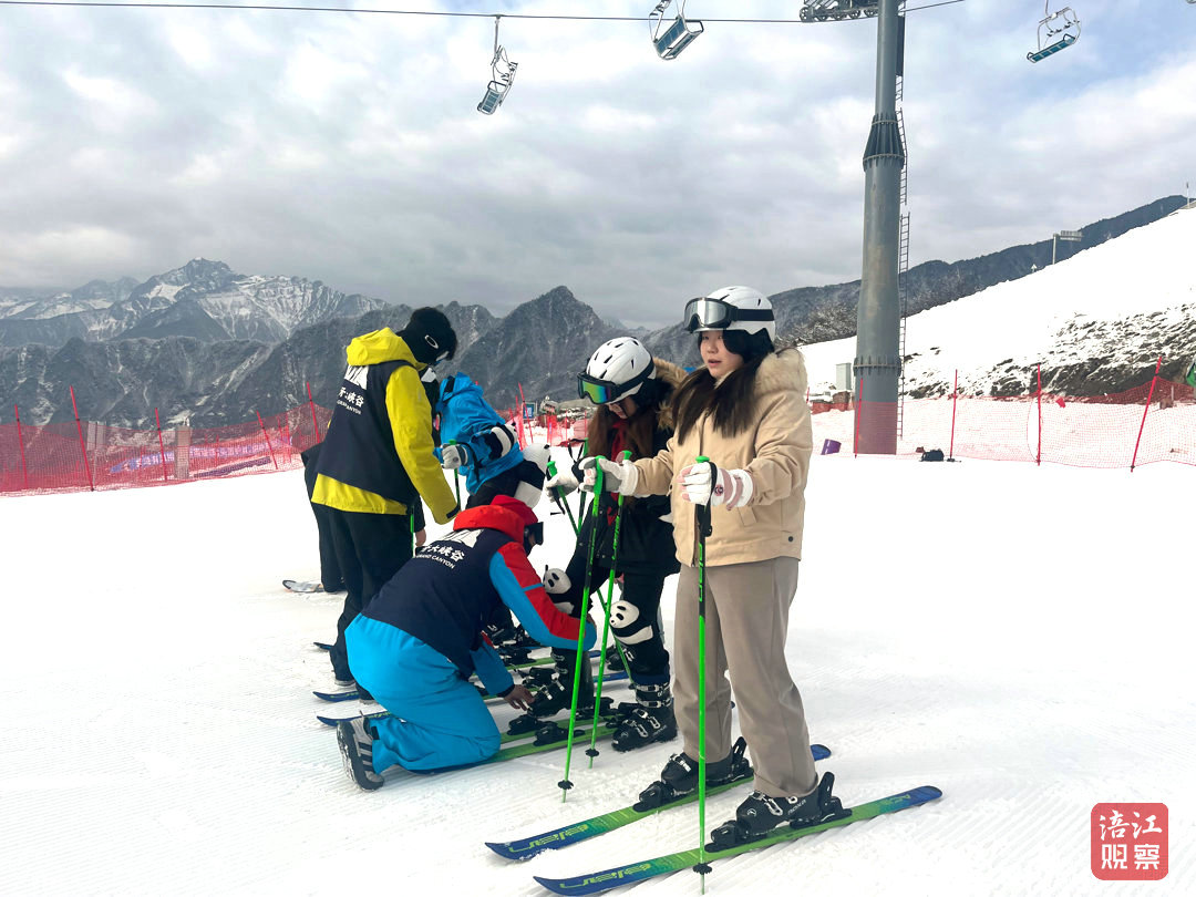 雪道上,三五成群的年輕人結(jié)伴滑行,用速度與歡笑重新定義年味。“以前過年就是在家吃吃喝喝,現(xiàn)在不一樣了,滑雪又刺激又好玩,這才是我們年輕人該有的春節(jié)!”來自平武黃羊鄉(xiāng)的楊超,一人帶著四個孩子,在雪地里盡情釋放活力。同鄉(xiāng)的劉艷特地購置了一身亮色滑雪服,“玩要玩得盡興,也要穿得夠‘出片’。”她說。