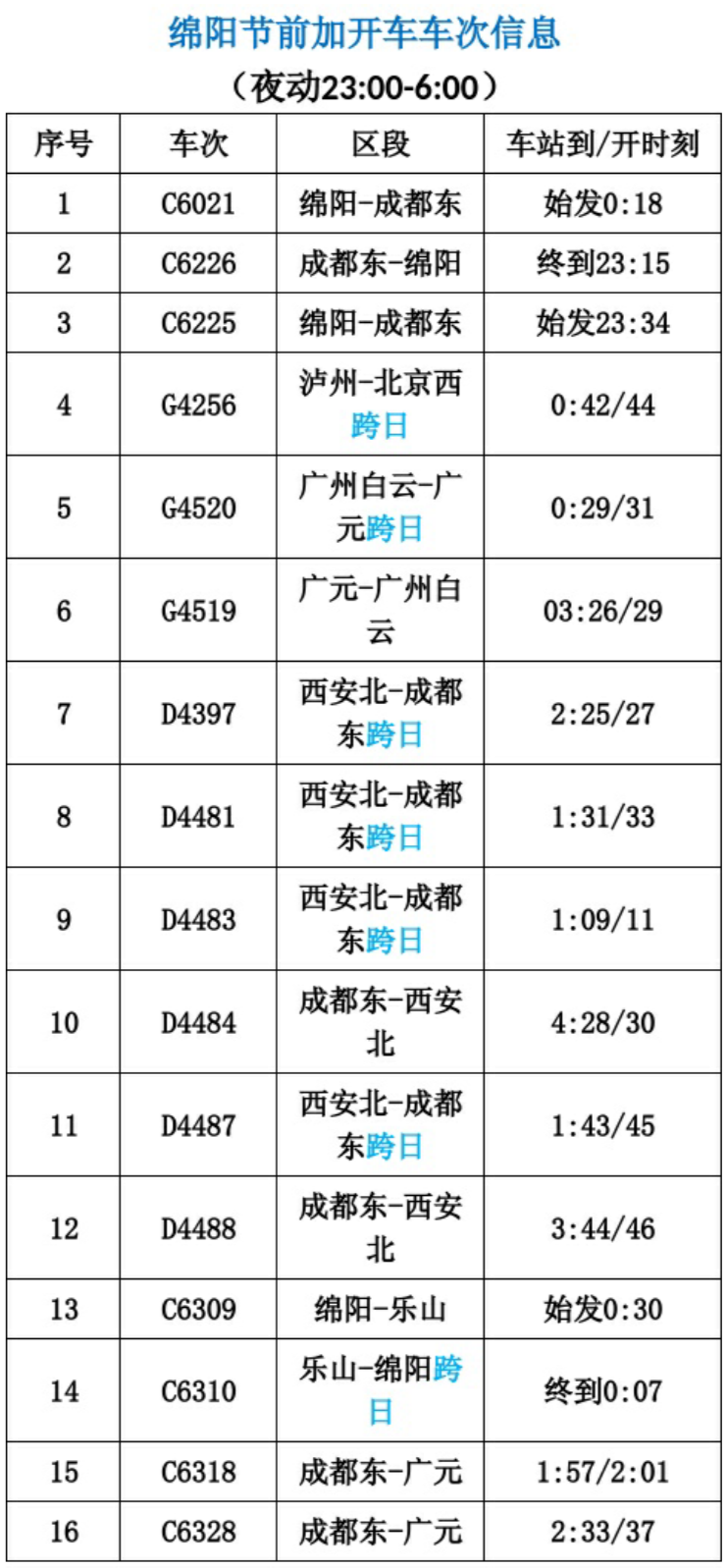 針對(duì)這一情況,中國(guó)鐵路成都局集團(tuán)有限公司精準(zhǔn)研判客流走勢(shì),優(yōu)化列車運(yùn)行圖,聚焦旅客出行需求,在原有日間列車運(yùn)力基礎(chǔ)上,加大夜間列車運(yùn)力投放。2月10日至15日,綿陽(yáng)站加開夜間動(dòng)車16趟,主要為:成都,瀘州,廣州,廣元,西安,北京等方向。全力保障旅客平安、有序、溫馨出行,讓春運(yùn)歸途更順暢。
