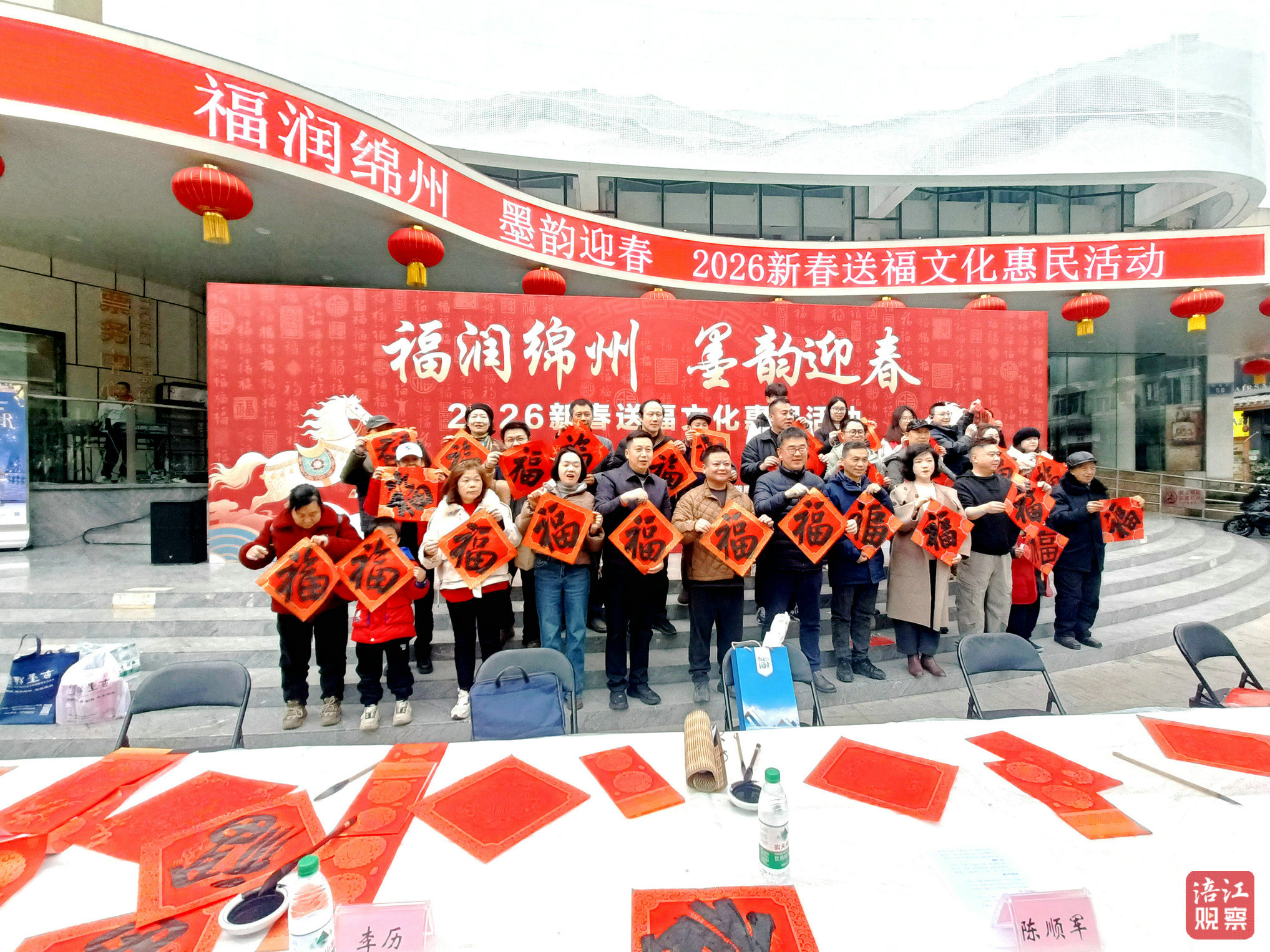 綿陽新聞網(wǎng)訊 2月1日,綿州大劇院門前廣場墨香四溢、紅紙鋪展,“福潤綿州 墨韻迎春”2026新春送福文化惠民活動(dòng)在此舉行。