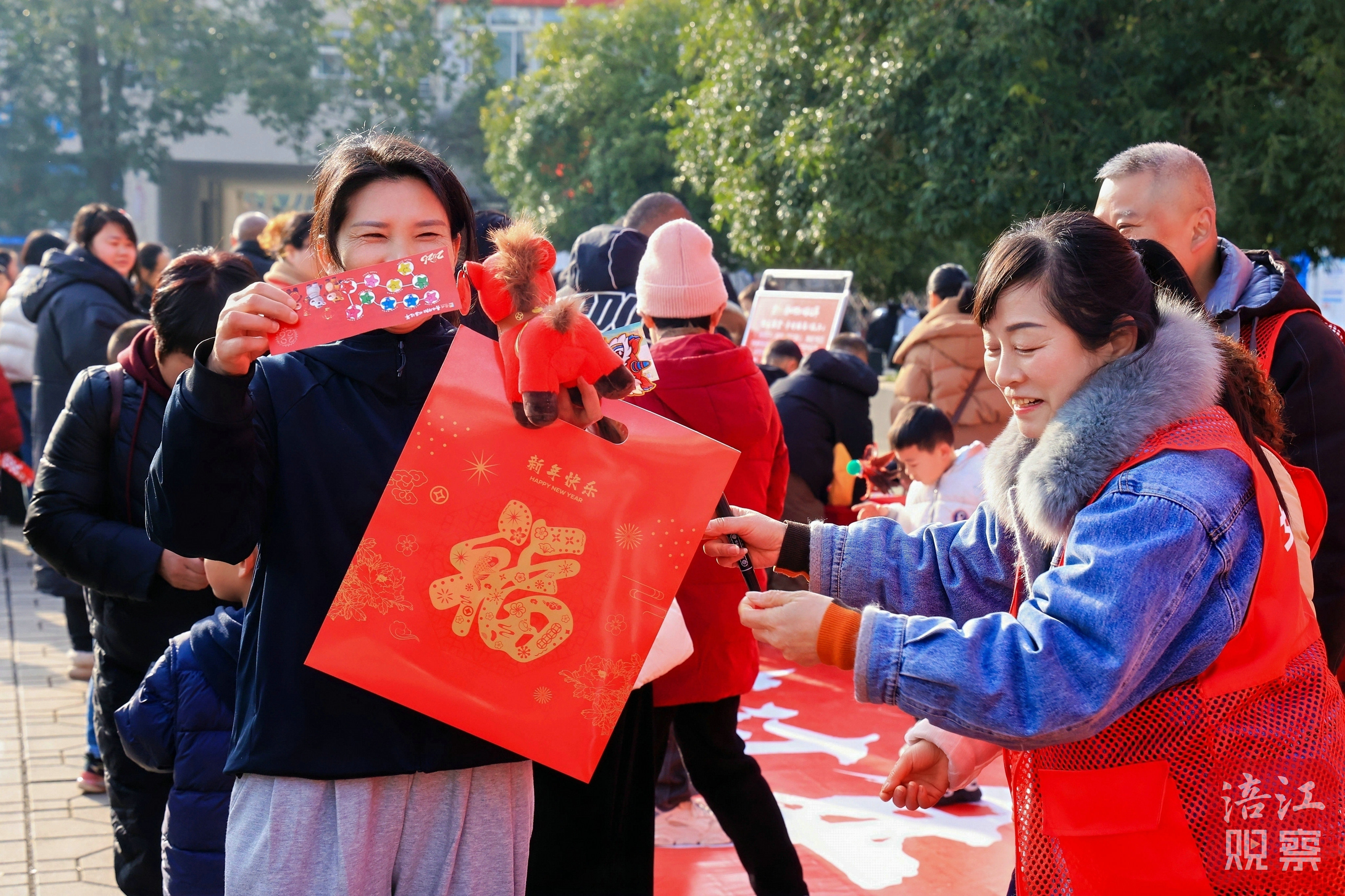 舞臺(tái)兩側(cè),趣玩新春、免費(fèi)送春聯(lián)、趣味猜燈謎等互動(dòng)活動(dòng)人氣高漲,市民們踴躍參與,在猜謎、領(lǐng)福、賞民俗的過(guò)程中感受傳統(tǒng)年俗的樂(lè)趣,領(lǐng)取新春美好祝福。