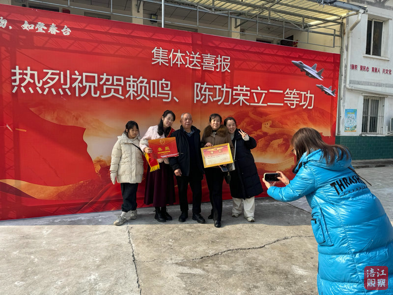 軍功章里有軍人的一半,更有家屬的一半。賴鳴的妻子唐婷忙前忙后,和家人親友合影留念。她手捧喜報激動地說:“作為妻子,我為賴鳴感到無比驕傲。我會全力照顧好家里,做他最堅實的后盾,希望他在部隊安心服役,再立新功!”