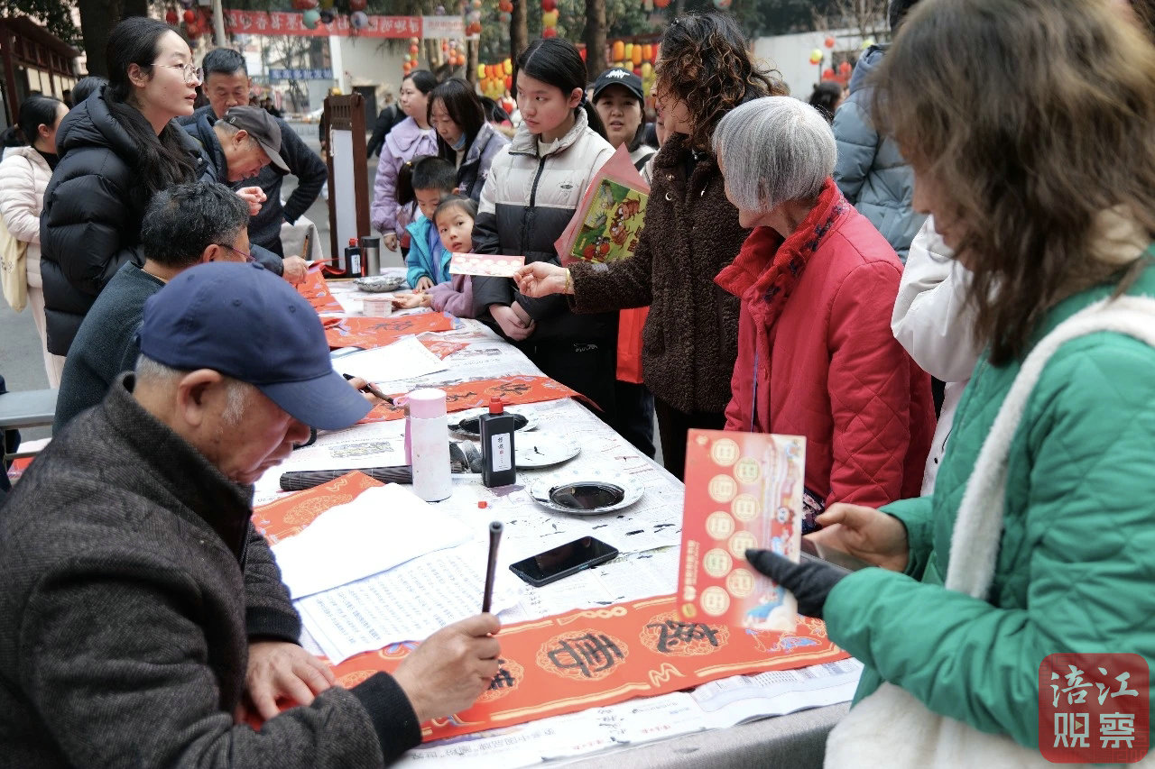 舞臺(tái)兩側(cè),趣玩新春、免費(fèi)送春聯(lián)、趣味猜燈謎等互動(dòng)活動(dòng)人氣高漲,市民們踴躍參與,在猜謎、領(lǐng)福、賞民俗的過(guò)程中感受傳統(tǒng)年俗的樂(lè)趣,領(lǐng)取新春美好祝福。