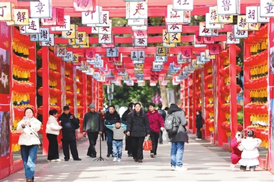 春節(jié)臨近,綿陽城區(qū)人民公園300余米長“百家姓”燈籠長廊,營造出濃厚的傳統(tǒng)文化年氛圍。 記者 王勇 攝