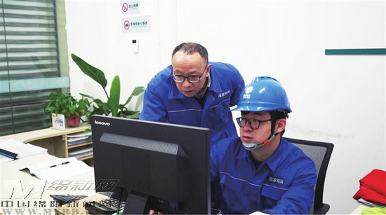 汪志剛(左)和同事查看用電數(shù)據(jù)。記者 唐云峰 攝
