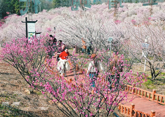 “去年和同事來過一次,盛花期的梅林古樸自然、美不勝收,今天再次來這里,打算玩一天,好好打卡留念。”一對來自成都的姐妹對梅林景致贊不絕口。成都游客趙先生表示:“專程帶一家人過來賞梅,梅花盛開、天氣晴好,孩子們玩得開心,我們也放松了心情,這趟旅行超值。”