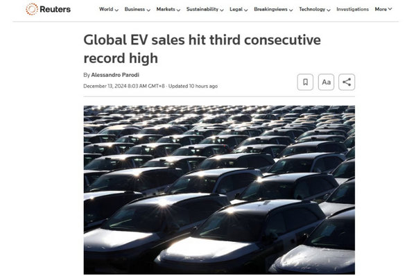 占全球總銷量近70% 中國繼續(xù)領(lǐng)跑全球電動汽車銷售市場