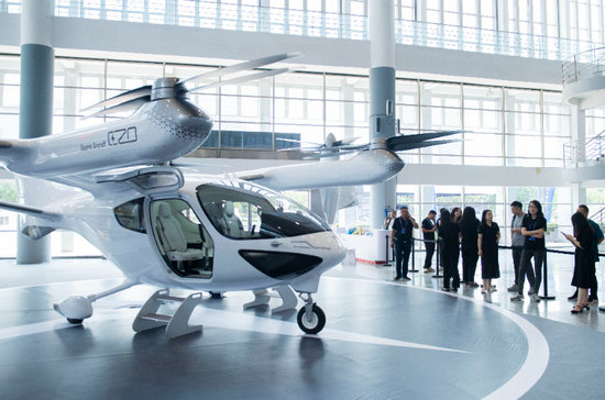 9月6日,觀眾在2024低空經(jīng)濟(jì)發(fā)展大會創(chuàng)新成果展區(qū)了解一款電動垂直起降飛行器。新華社記者 傅天 攝