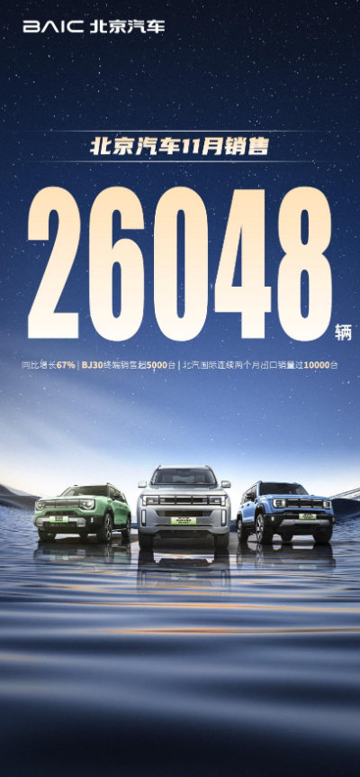 進(jìn)入2024年底,北京品牌的市場(chǎng)銷量節(jié)節(jié)飆升。數(shù)據(jù)顯示,北京品牌9月銷量同比增長29%,10月同比增長120%,11月同比增長67%;BJ30連續(xù)3個(gè)月單月銷量超過5,000臺(tái),成為方盒子市場(chǎng)爆品;1-11月海外銷量同比增長47%,連續(xù)兩個(gè)月海外單月銷量突破10,000輛。
