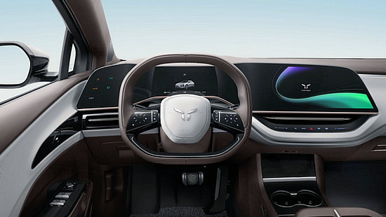 進入車內(nèi),環(huán)抱懸浮的中控、喀納斯湖面漣漪般的紋理以及將天空盡收眼底的天幕,宛如一幅人車自然相融共生的畫卷,“山環(huán)水抱、天光云影”意境之美詮釋得恰到好處。