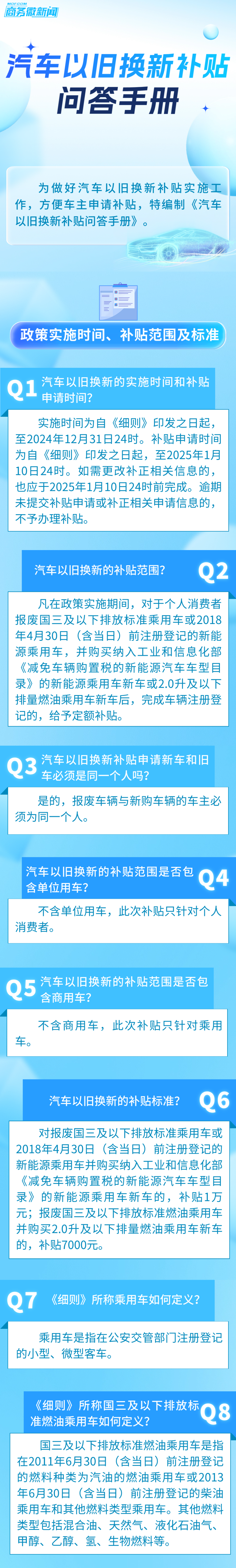 近日,商務(wù)部、財(cái)政部等7部門聯(lián)合印發(fā)《汽車以舊換新補(bǔ)貼實(shí)施細(xì)則》,《細(xì)則》明確了補(bǔ)貼范圍和標(biāo)準(zhǔn)。