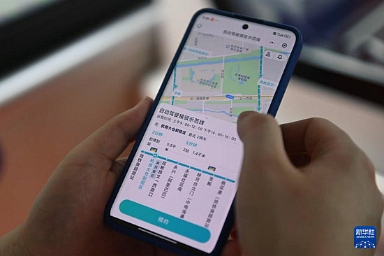 5月22日,市民通過手機預約體驗自動駕駛接駁示范線。