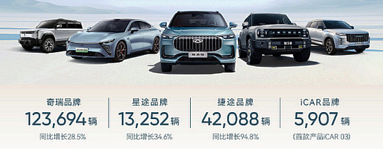 四大主力乘用車品牌中:奇瑞品牌6月銷量123,694輛,同比增長28.5%;1-6月銷量706,767輛,同比增長41.9%;星途品牌6月銷量13,252輛,同比增長34.6%;1-6月銷量54,447輛,同比增長28.9%;捷途品牌6月銷量42,088輛,同比增長94.8%;1-6月銷量223,555輛,同比增長98。9%;iCAR品牌 首款產(chǎn)品上市4個月,6月銷量5,907輛;1-6月銷量25,586輛。