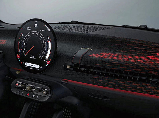 圓形承載了MINI發(fā)展的源遠歷史,即使在電動時代,圓形設(shè)計元素也是MINI最重要的設(shè)計元素。在全新電動MINI Cooper上,傳承經(jīng)典的最醒目的圓形前大燈、圓形外后視鏡、車內(nèi)圓形OLED屏幕、圓形門把手等等,都時刻散發(fā)最典型的富有樂趣的MINI氣質(zhì)。