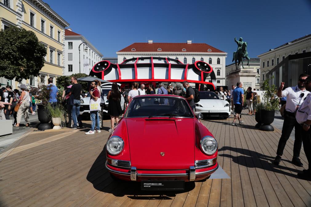 2023年9月8日,人們在德國慕尼黑國際車展城市公共展示區(qū)的保時捷展區(qū)參觀。新華社記者張帆攝