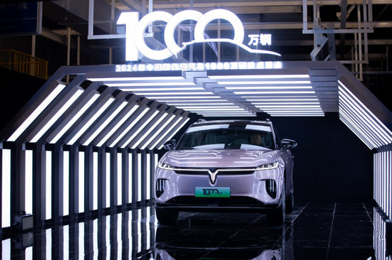 圖為2024年11月14日,隨著一輛嶄新的嵐圖知音在武漢嵐圖云峰工廠駛出生產(chǎn)線,我國新能源汽車產(chǎn)量首次突破年度1000萬輛,中國由汽車大國向汽車強(qiáng)國邁進(jìn)走出堅(jiān)實(shí)一步。